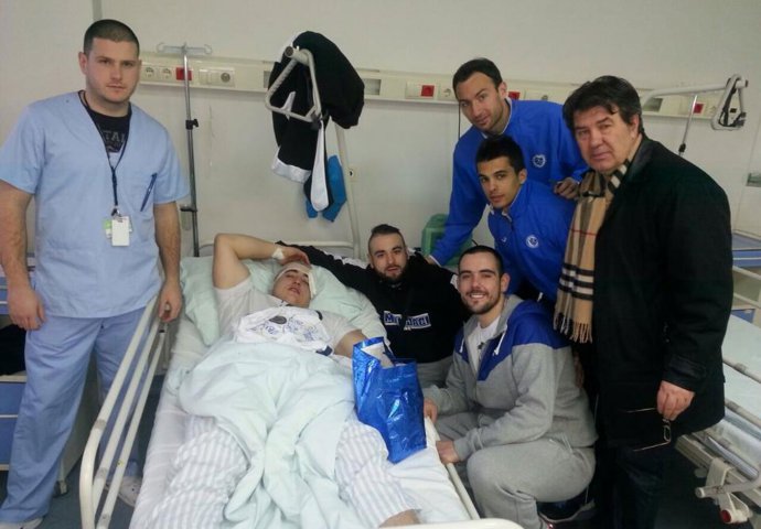 Igrači Željezničara Marijan Antolović i Josip Kvesić, te direktor Mirsad Šiljak posjetili su navijača koji je povrijeđen tokom utakmice s Olimpicom.