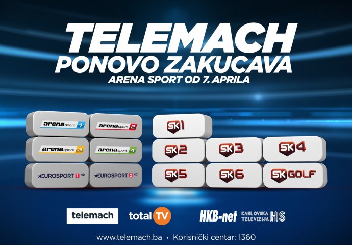 Sadašnji i budući korisnici usluga kompanije Telemach, te kompanija Telemach grupacije KATV HS, HKB-net, BHB i Global Internet, kao i korisnici usluga Total TV-a, od ovog trenutka imaju jedinstvenu priliku da u okviru programske sheme gledaju i Arena Sport kanale.