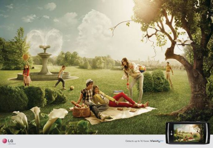 Plakati za LG pametne telefone u sebi kriju čak 16 lica. Pojavili su se u časopisima i novinama kao dio promocije novog telefona čija kamera ima opciju prepoznavanja lica.