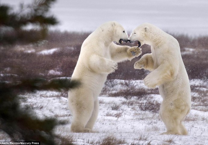 Alberto Ghizzi Panizza, 39 godišnjak, iz Italije, gledao je sa čuđenjem kako golemi sisavci razmjenjuju udarce na ledenom zemljištu u blizini Wapusk Nacionalnog parka u Manitobau u Kanadi.
