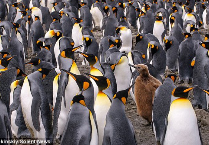 Nije teško pronaći mlade pingivne u ovoj ogromnoj skupini kraljevskih pingvina.