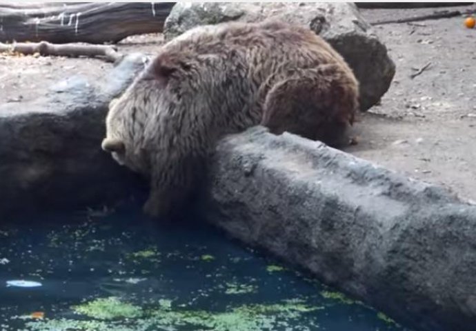 Vali, grizli medvjed, impresirao je posjetitelje zoološkog vrta kada je spasio vranu koja se davila u vodi.