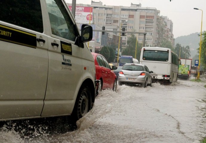 Jaka kiša padala je više od sata i za to vrijeme brojne tuzlanske ulice postale su mala jezera. Saobraćaj je veoma otežan u naseljima Sjenjak, Stupine, Simin Han, Kreka, Kula, Slavinovići i drugim.