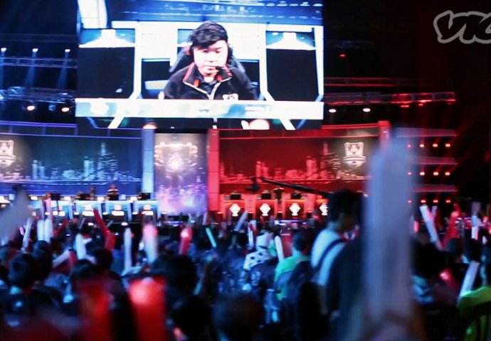 Oni sjede na pozornici na stadionu koji prima 50.000 ljudi i igraju Lige Legends.