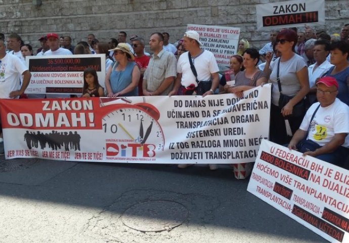 Članovi Udruženja dijaliziranih i transplantiranih bolesnika Federacije BiH danas su se, simbolično u 12.05 sati, okupili ispred zgrade Parlamenta Federacije BiH u Sarajevu na mirnim protestima da bi ukazali na probleme s kojima se suočavaju ovi pacijenti.