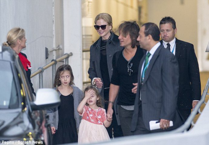 U petak uoči Uskra je stigla u Sydney, sa svoje dvije kćeri Sunday Rose i Faith Margaret, te svojim suprugom Keithom Urbanom.
