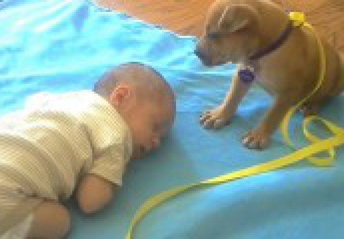 Ovo je definitivno najslađi video koji imate priliku pogledati. Mala beba je zaspala, njen najbolji prijatelj se našao pored nje i zaštitnički ponašao, baš poput prave dadilje.