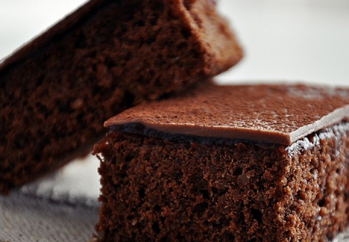 Čokoladu izlomiti na kocke i zajedno sa slatkim vrhnjem otopiti na niskoj temperaturi. Jaja odvojiti, bjelanca umutiti sa prstohvatom soli i 50g šećera u snijeg. Žumanjke dobro umutiti sa ostatkom šećera, te lagano dodati čokoladnu masu i opet sve sjediniti. Bademe u nekoliko navrata dodati prethodnoj smjesi, miješajući lagano kuhačom da se smjesa homogenizira. Na kraju dodati prosijano brašno i snijeg od bjelanaca, sve lagano sjediniti kuhačom. Masu istresti u pleh, lijepo zagladiti i peći oko pola sata na 160°C (provjeriti čačkalicom). Džem od marelica zagrijati i dodati mu kašiku ruma, te premazati po pečenom, jos vrućem kolaču.Ostaviti da se ohladi. Za glazuru istopiti čokoladu sa uljem na pari, preliti po kolaču i ostaviti da se stegne. Ohlađeno po želji posuti gorkim kakaom.