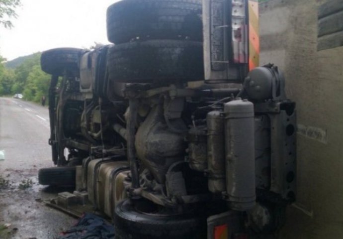 Teretno vozilo prevrnulo se na magistralnom putu Šićki Brod-Živinice u mjestu Husino, zbog čega se saobraćaj na tom dijelu odvija otežano jednom trakom.