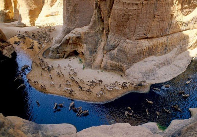 Guelta d’Archei se nalazi u visoravni Ennedi, u sjeveroistočnm Čadu, skrivena iza kanjona koji je štiti od surovih pustinjskih uslova. Nju svaki dan posjeti na stotine deva koje pastiri ovdje dovode da se napiju vode i odmore, prije nego nastave svoj naporni put preko Sahare. Ova tradicija traje već stotinama godina, a zbog velikog broja deva u vodi (i njihovog izmeta), ona je postala trajno crna.