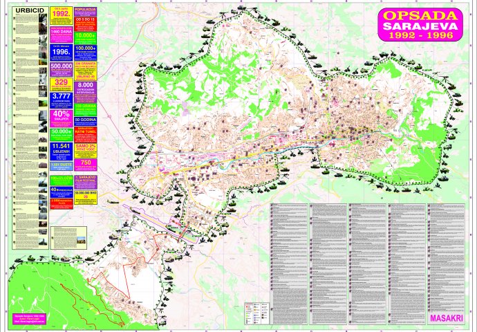Fikret Logić, 57-godišnjak iz Sarajeva napravio je mapu opkoljenog Sarajeva, koji prikazuje granicu opsade te detalje sa svih mjesta urbicida i masakra.