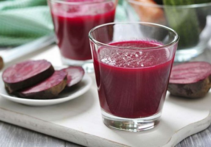 Uzmite pola kilograma mrkve i isto toliko sirove cvekle. Povrće sitno nasjeckajte i stavite u neoštećeni emajlirani lonac. Prelijte kipućom vodom tako da voda bude dva prsta iznad povrća. Zatim dodajte po jednu šaku sjeckanih suvih marelica i suvog grožđa. Stavite lonac na vatru da voda proključa. Odmah zatim skinite lonac s vatre.