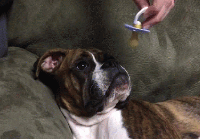 Naime, ovaj pas je star samo osam mjeseci može zaspati samo sa cuclom u ustima.