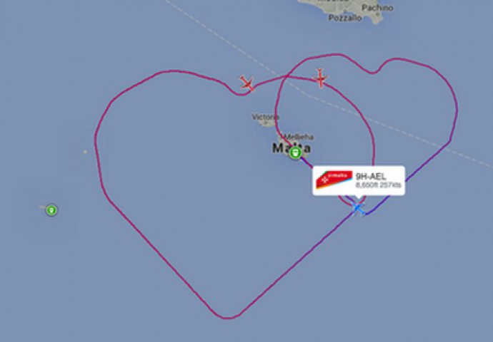 Portal flightradar24.com zabilježio je neobičan let te objavio fotografiju na kojoj se vidi da je Airbus A319 u dva navrata obletio ostrvsku državu putanjom u obliku srca, sve kako bi se proslavilo sklapanje braka između pilota i članice osoblja Air Malte.