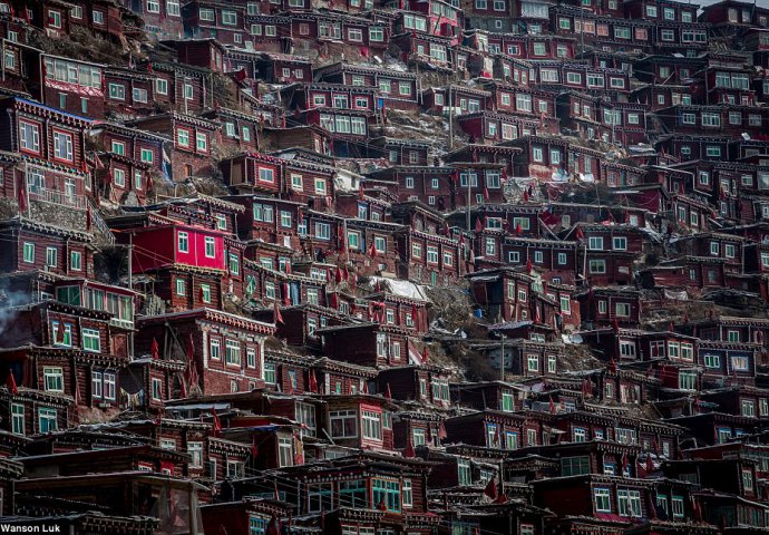 Među zelenim brežuljcima u Larung Gar dolini u Kini, zadnja stvar koju bi očekivali vidjeti u prirodi je hiljade crvenih drvenih koliba koje su izgrađene u masivnim klasterima.