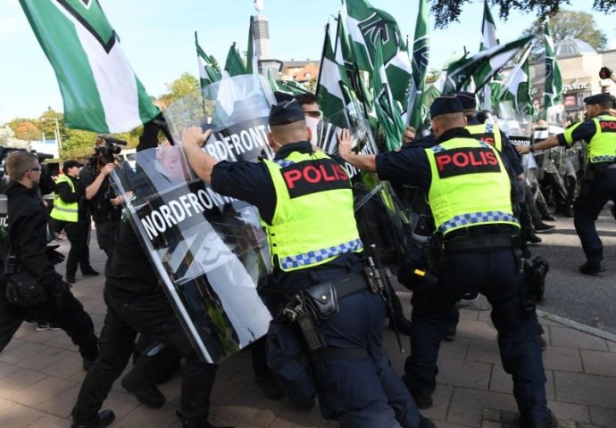 Desetine ljudi uhapšeno je danas u sukobu neonacista i antifašista sa policijom, a tokom marša ekstremnog desničarskog pokreta Nordijski otpor (NMR) u Geteborgu, saopštila je policija.