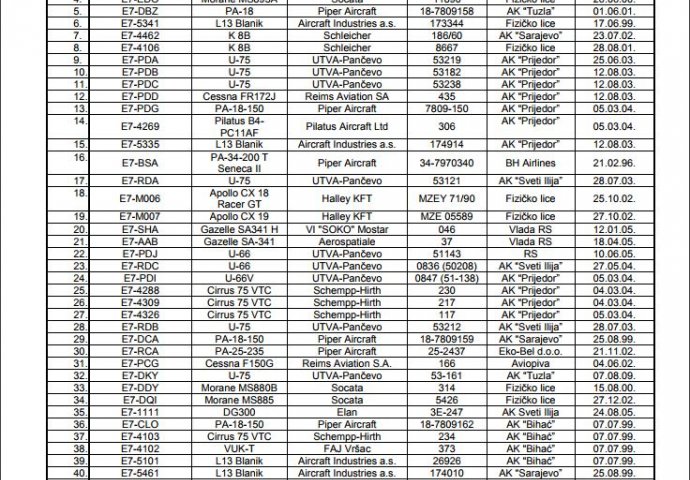 U nastavku pogledajte spisak privatnih zrakoplova u Bosni i Hercegovini i njihove vlasnike, dostupan na BHDCA.