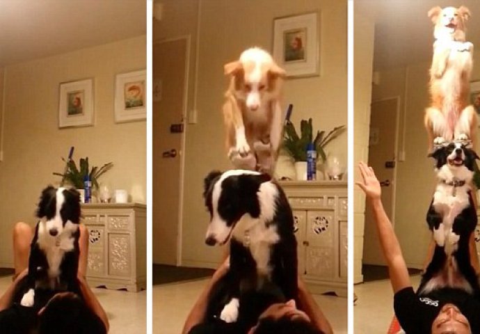Nevjerovatne akrobacije dva psa i njihovog vlasnika