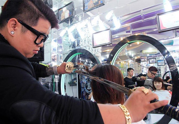 " Mač mi omogućava da preciznije odsječem kosu i lakše istanjim krajeve, nego što bih to uradio makazama", kaže Hoang