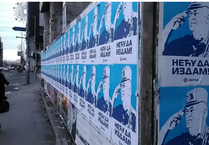 Na više lokacija u Beogradu jutros su osvanuli plakati sa likom ratnog zločinca Ratka Mladića sa rukom dignutom u vojnički pozdrav ispod kojeg piše "Neću da izdam".