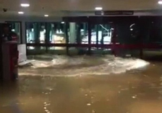 Trgovački centar spektakularno je potopljen kada su se staklena vrata razbila.