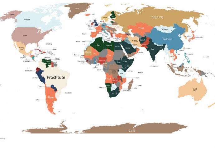 Tako je početkom ovog mjeseca stranica FIXR.com napravila mapu najčešće ''klikanih'' proizvoda putem Google-a, koristeći formulu "Koliko nešto košta u određenoj državi".