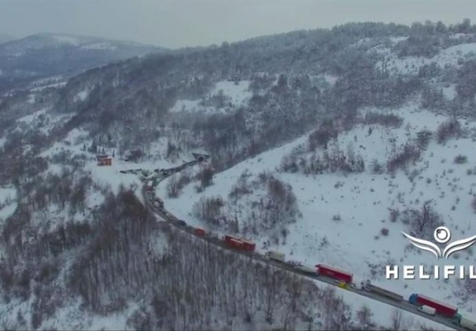 Kako su jučer izgledale kilometarske kolone na planinskom prevoju Ivan Sedlo zabilježila je dronom ekipa Helifilma.