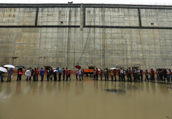 Ni kišno vrijeme nije obeshrabrilo čak 45.000 ljudi da obiđu novosagrađenu komoru Panamskog kanala - vještački kanal u najužem dijelu Srednje Amerike koji spaja Atlantski s Tihim okeanom. Na najužem mjestu je širok 91,5 metara, a na najširem 350 metara.