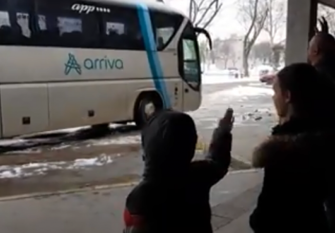 U autobusu koji odlazi nalazi se jedna žena, moja supruga i majka troje djece, dvoje manjih su poslije škole došli na ispraćaj, a starija je u školi.