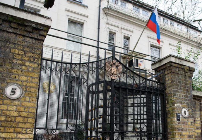 Ambasada Rusije u Londonu smatra neprijateljskim aktom protjerivanje ruskih diplomata, što je Britanija učinila nakon trovanja bivšeg ruskog špijuna Sergeja Skripalja i njegove kćerke u Solsberiju prošle sedmice.