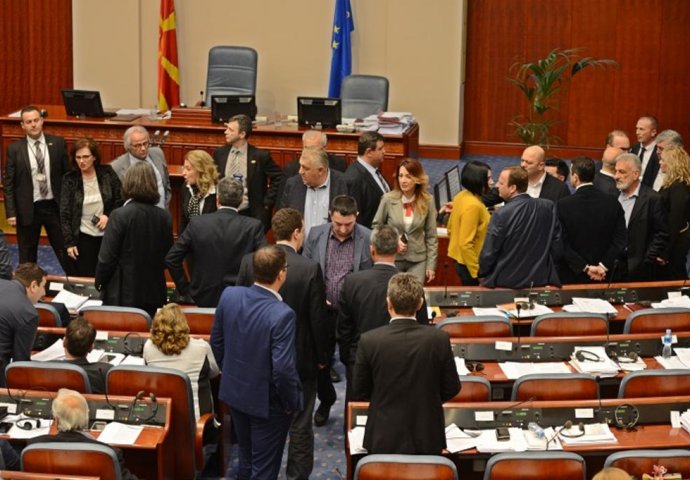 Obezbjeđenje makedonskog parlamenta je moralo da reaguje kada je Nikola Gruevski, bivši lider stranke VMRO-DPMNE i nekadašnji premijer te zemlje, prišao predsjedniku Sobranja Talatu Džaferiju i polio ga vodom.