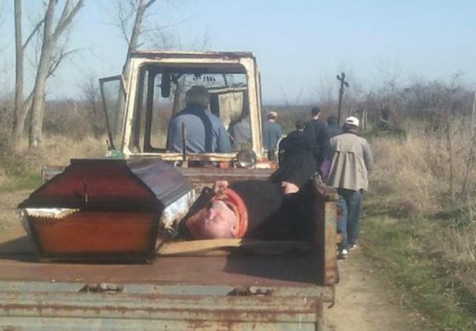 Pozlilo mu je, objašnjava, kada su krenuli na groblje, gde je u nedelju trebalo da održi opelo preminulom meštaninu, samo je prilegao na traktor. Pored sanduka sa pokojnikom, jeste, priznaje pop, ali drugog prevoza nije bilo, a njemu se baš slošilo.