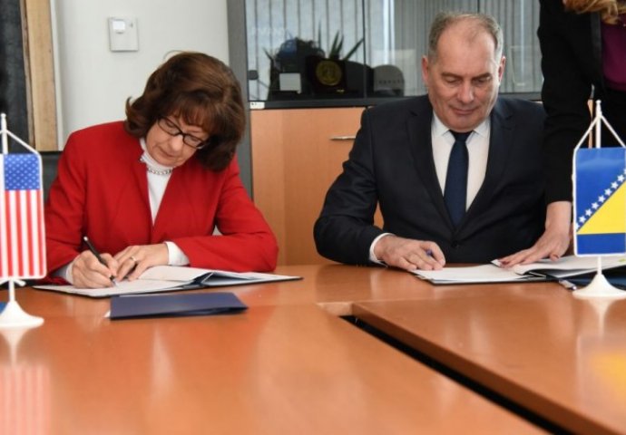 Ministar sigurnosti Bosne i Hercegovine Dragan Mektić i ambasadorica Sjedinjenih Američkih Država (SAD) Maureen Cormack potpisali su danas u Sarajevu Memorandum o namjeri između Vijeća ministara Bosne i Hercegovine i Vlade Sjedinjenih Američkih Država o doniranju Sistema za personalnu identifikaciju, sigurno poređenje i vrednovanje i Memorandum o razumijevanju između Ministarstva sigurnosti Bosne i Hercegovine i Ministarstva energetike SAD-a o sprečavanju nedozvoljene trgovine nuklearnim i drugim radioaktivnim materijalom.