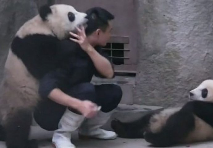 Naime, simpatična situacija nam dolazi iz Kine. Staratelj je pokušao nahraniti dvije pande, ali teško da je uspio u tome. Prvo su se opirale, a kasnije mu se jedna zaskočila na vrat i počela ga grickati, samo da ih prestane ''gnjaviti''.