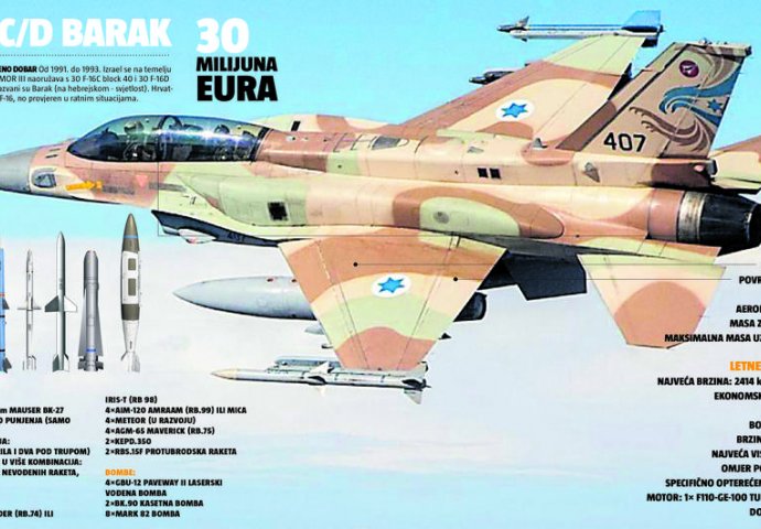 Vijeće za obranu preporučilo je u utorak Vladi donošenje odluke o sklapanju ugovora o nabavci borbenih aviona. Navodno su, kako neslužbeno doznajemo, preporučili da se potpiše ugovor s Izraelom, od kojeg će se naručiti rabljene borbene avione F-16 C/D Barak. Avioni stari 25 godina koštat će oko 500 miliona dolara, a Hrvatska će ih kupiti 12. U ponudu ulaze avioni s naoružanjem, dva simulatora, borbena obuka pilota te garancija da iza cijelog posla stoji upravo država, odnosno Izrael. Najveći konkurent ovoj ponudi bila je švedska tvrtka SAAB, koja je ponudila nove avione za 700 miliona eura, no u cijenu nije uključeno naoružanje. Drugi minus ponudi je što ponudu daje tvrtka, a ne država. Nakon preporuke Vijeća,