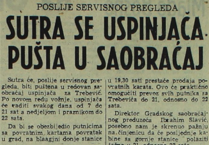Evo kako je sarajevsko Oslobođenje izvjestilo o puštanju u promet žičare prije 59 godina: