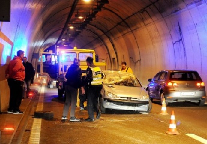 SAOBRAĆAJNA NESREĆA U TUNELU: Peugeot udario u zid pa se prevrnuo na krov!
