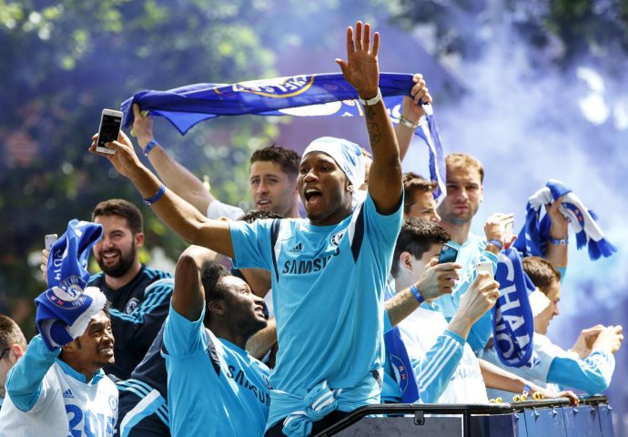 Hiljade "plavaca" je preplavilo ulice oko stadiona Stamford Bridge kako bi pozdravili šampionsku ekipu koja ih je sa peharom pozdravila s otvorenog autobusa koji je prolazio ulicama.