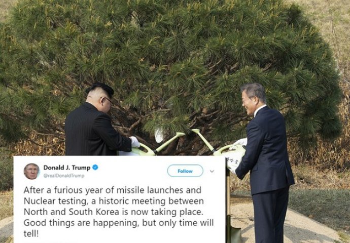 ''Nakon žestoke godine lansiranja projektila i nuklearnih testova, održava se povijesni sastanak između Sjeverne i Južne Koreje. Dobre stvari se događaju, ali samo će vrijeme pokazati", poručio je Trump.