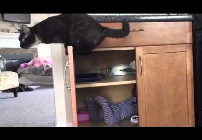 URNEBESNO: Beba je ušla u kuhinjski element, a pogledajte šta je pokvarena mačka uradila!
