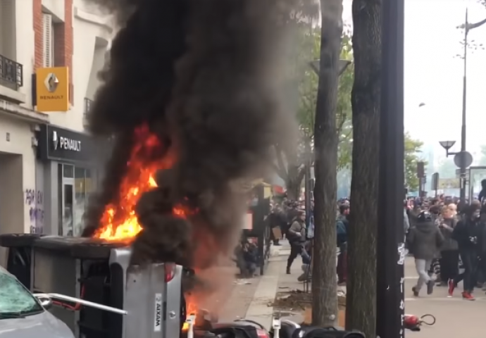 Neredi su izbili na prvomajskim protestima u Francuskoj, nakon što su maskirani demonstranti počeli da pale automobile i bacaju dimne bombe, prenijeli su francuski mediji.