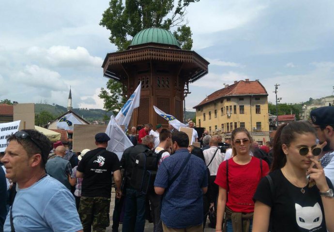 Na Baščaršiji se okupilo stotinjak bivših boraca Armije RBiH, koji su poručili kako neće pristati na "falsifikovanje činjenica". Očekuje se i dolazak učesnika iz Krajine.