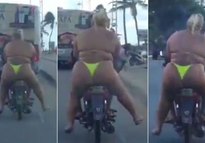 Žena koja je snimljena kako se vozi na motoru u Brazilu, možda bi mogla da bude prva obična osoba koja će slomiti internet usljed svog neobičnog izbora odjeće.