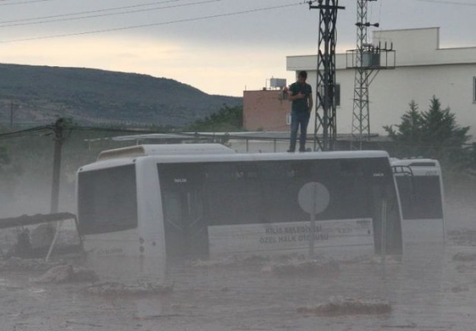 Nakon kratkih, ali vrlo obilnih padavina u južnom turskom gradu Kilisu, voda je zahvatila brojne stambene objekte i napravila katastrofu u gradskom saobraćaju, javlja Anadolija.