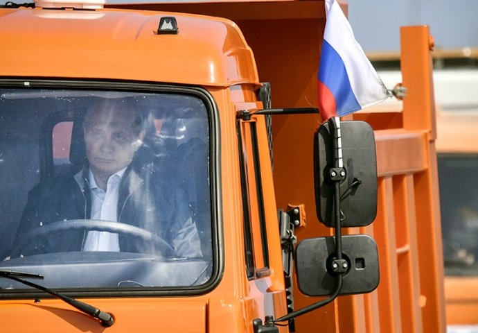 Vladimir Putin, ruski predsjednik prevezao je narandžasti kamion preko mosta koji povezuje jug Rusije i poluostrva Krim, koje je Rusija anektirala 2014.