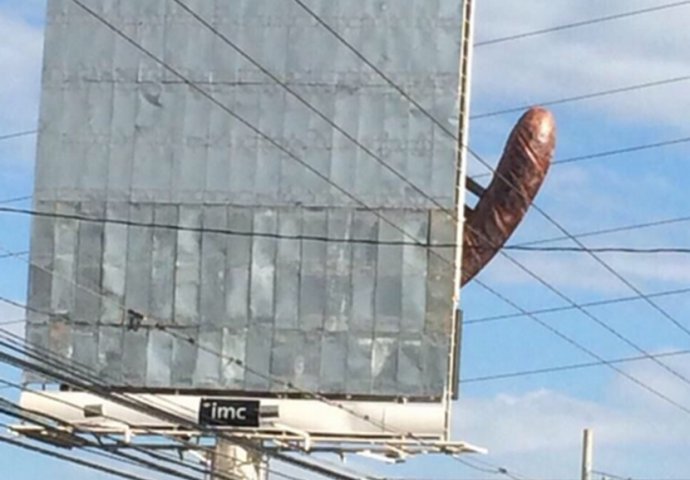 Gledajući u ovu reklamu otpozadi, ona djeluje kao penis u erekciji, međutim, stvarna slika je mnogo drugačija.