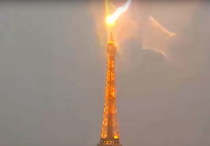Uslijed nevremna koje se dogodilo u Parizu, Eiffelovu kulu je pogodila munja, a cijeli taj događaj zabilježile su kamere...