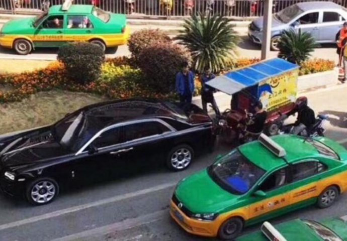 Naime, dvostrani trocikl udario je u zadnji dio skupocijenog Rolls Royca. Prema kineskim propisima onaj ko udari u zadnji dio drugog vozila po automatizmu je krivac za udes.
