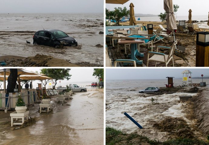 KATAKLIZMIČNI PRIZORI NAKON POTOPA U GRČKOJ: Automobili završili u moru, ljudi u nevjerici posmatrali šta se događa