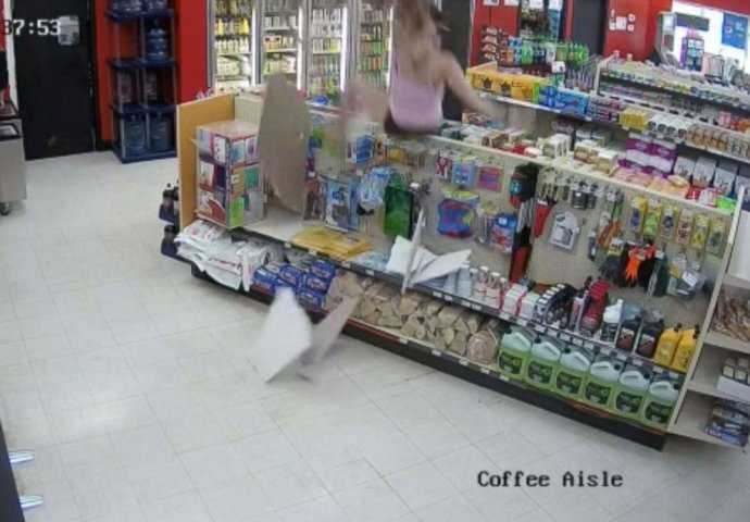 Ustala je s poda i nastavila bježati, ali ju je policija zaustavila i uhvatila na izlazu iz radnje.